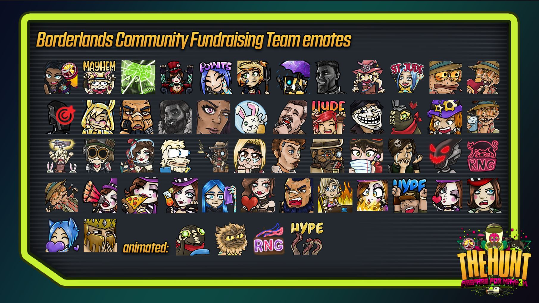 Spice up your stream with this years edition of The Hunt emotes!